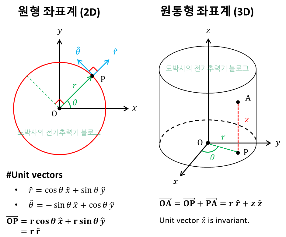 직선 운동은 x,y,z 3축을 활용한 Cartesian 좌표계를 사용해 이해하는 것이 가장 좋다. 반면 회전 운동을 모사할 때는 원통 좌표계가 훨씬 더 유용하다. 아직 원통 좌표계가 익숙하지 않은 이학/공학도라면 이번 기회에 익혀보길 바란다.